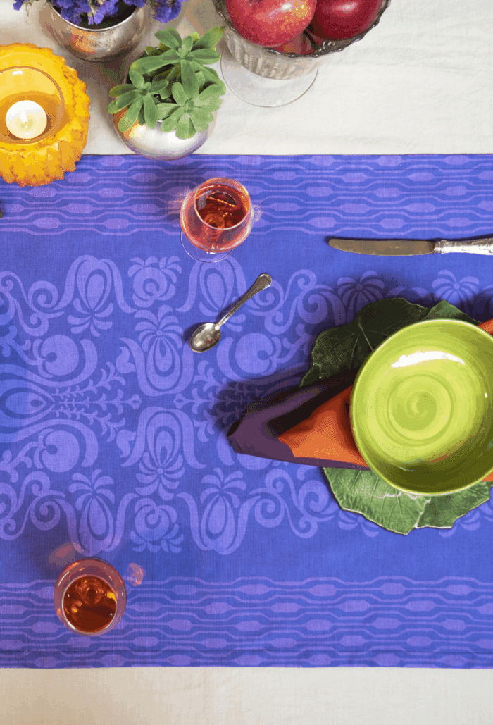 Nasce così una collezione di runner e tovagliette in puro lino di diversi colori, stampati interamente a mano.