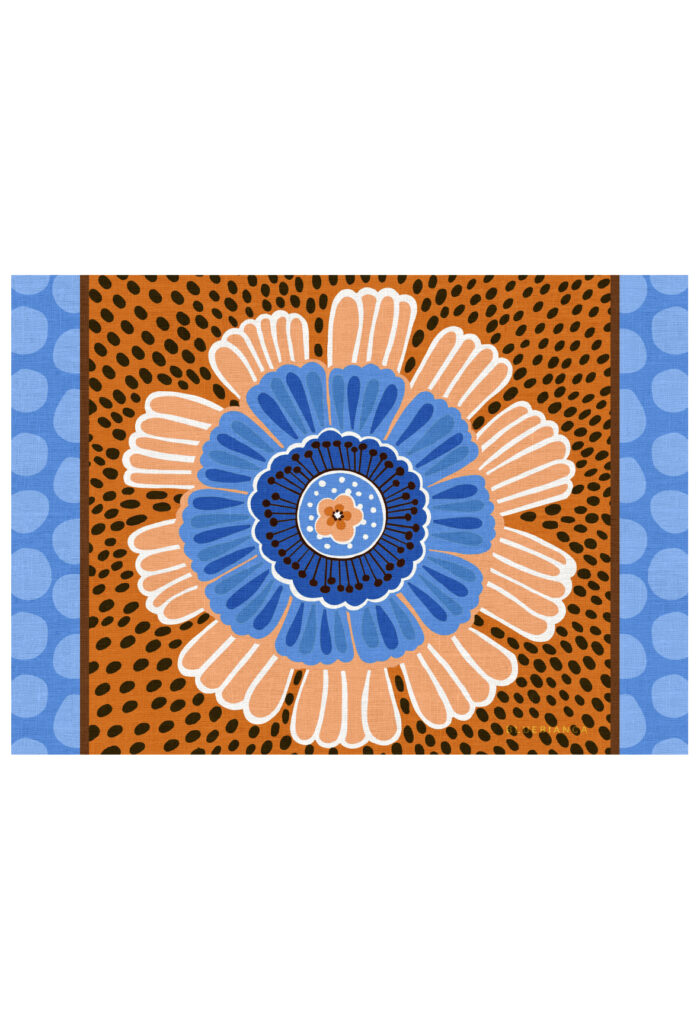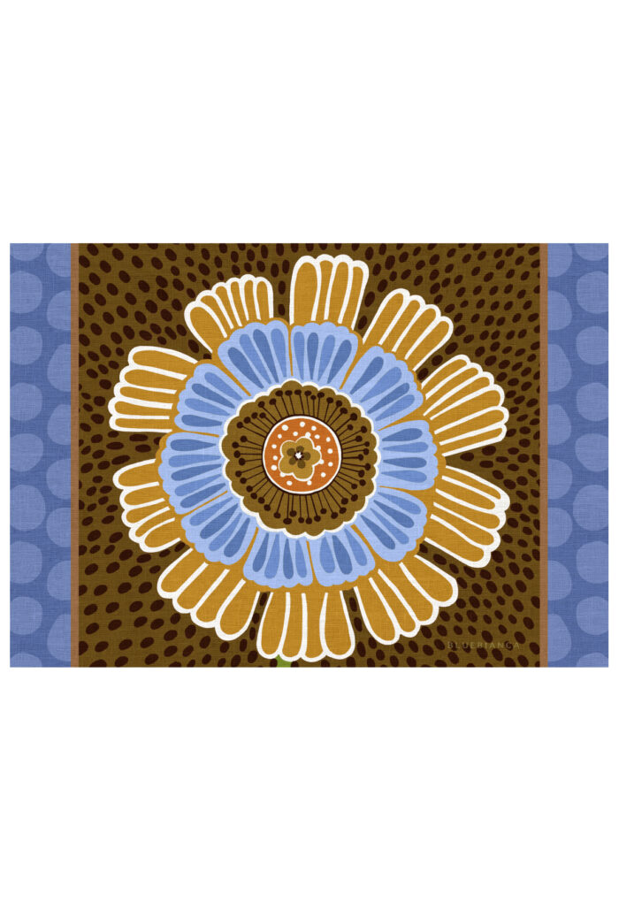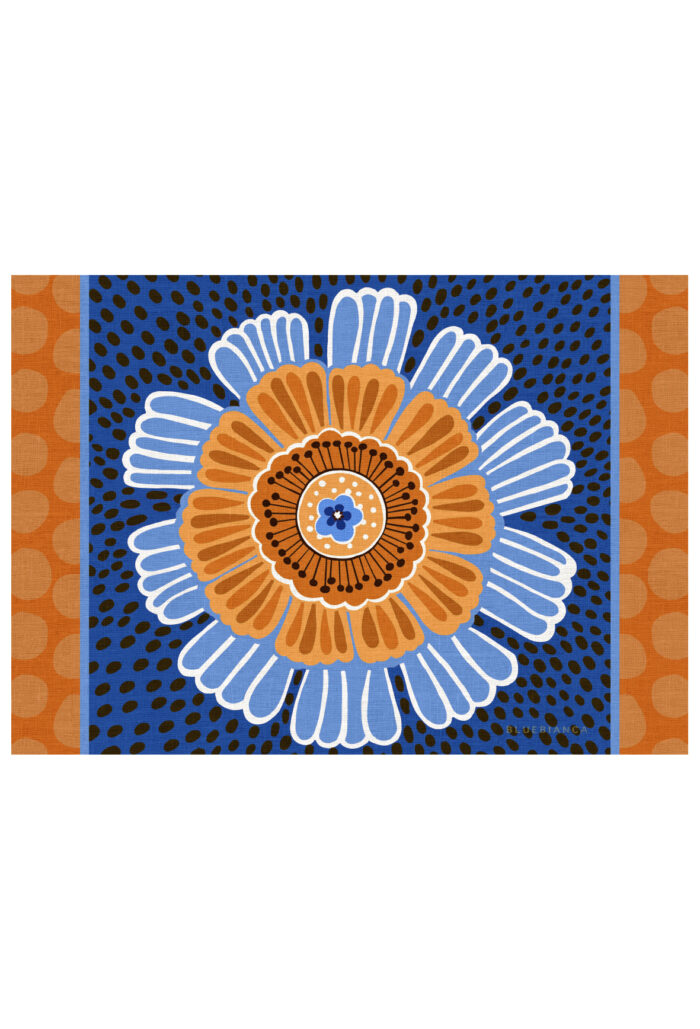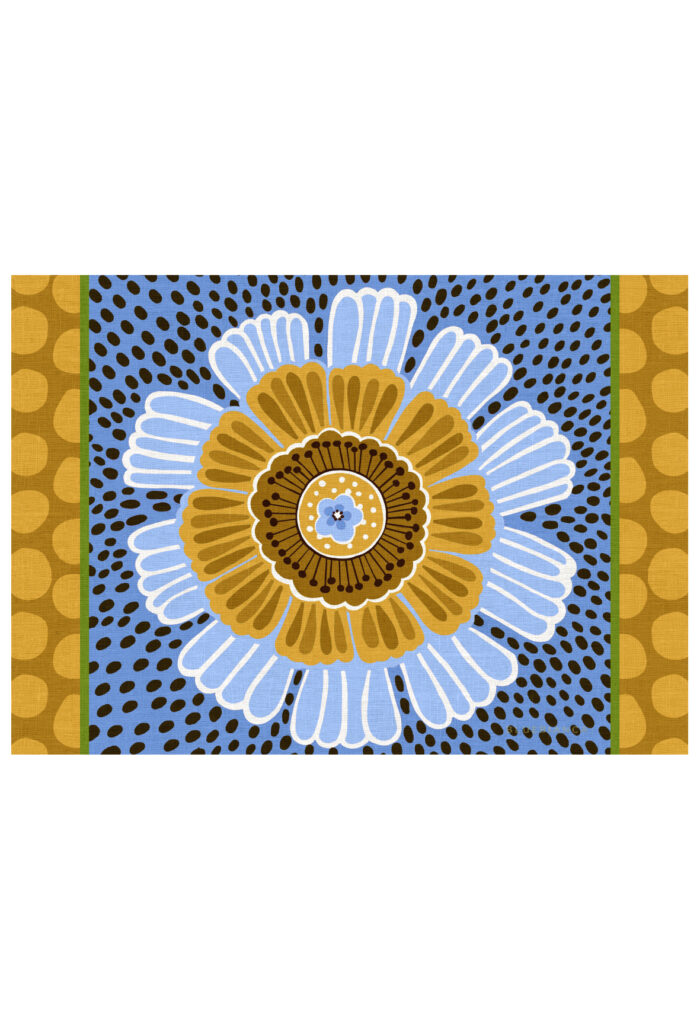 Garden Party è la collezione rotonda di Bluebianca, costruita su un disegno grafico a tinte piatte.