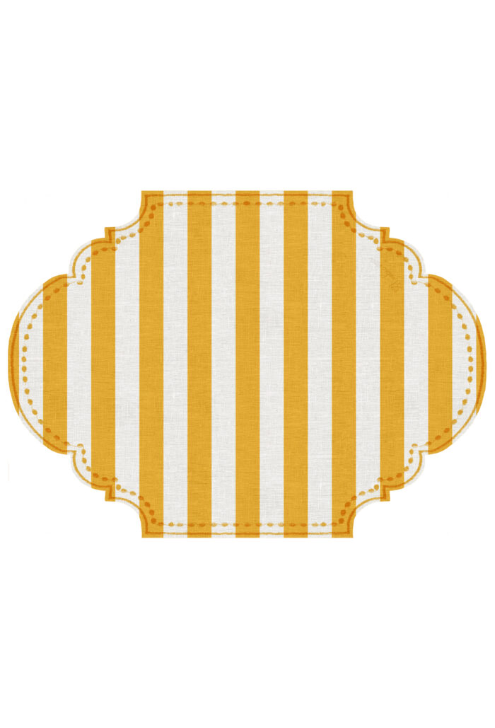 Un segno semplice, iconico, che richiama le tende delle case sul mare, gli ombrelloni italiani, le architetture liguri bagnate dal sole.