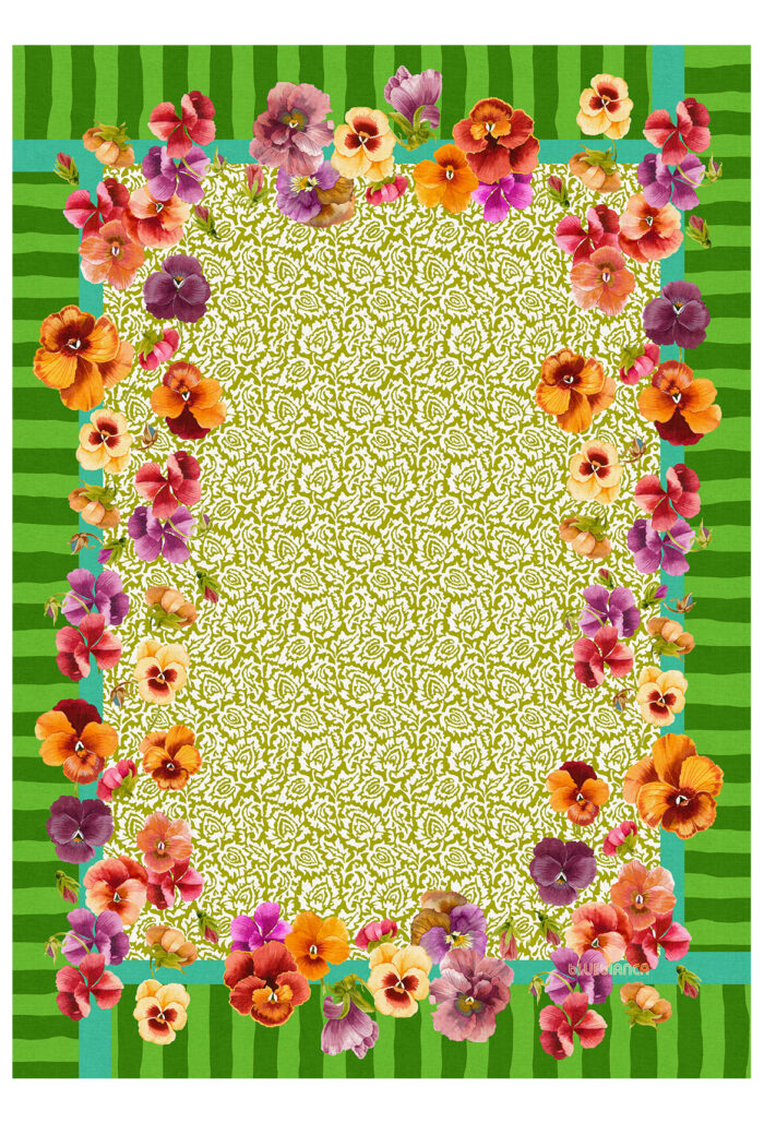 La riga radiale costruisce struttura e movimento, il fiore centrale diventa segno iconico. Ogni variante nasce dalla palette 2026 ed è progettata per dialogare con Burano, Portofino, Rimini, Dot e Savana in un sistema di mix and match libero ma armonico.